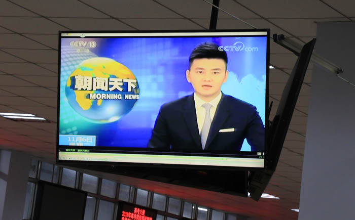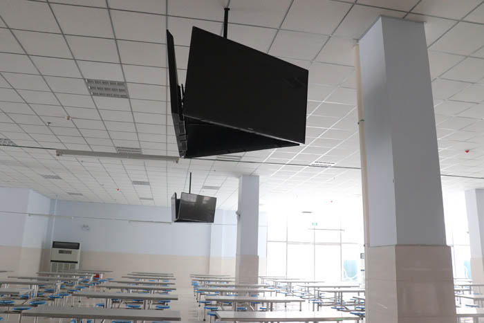 餐厅里配有全方位多媒体播放设备,每天在学生的用餐时间播放新闻,以供学生了解时事热点。