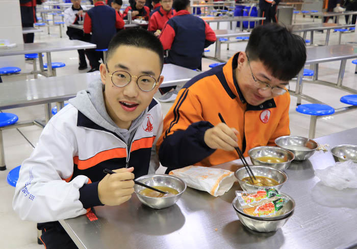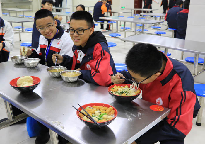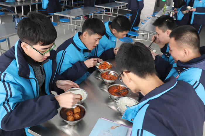我们宏达学校分为南北校区两个餐厅,他们的饭菜标准都是一样的。