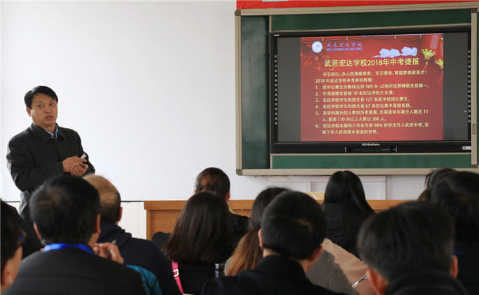 在多媒体教室里,李主任以“抓规范 重管理 提质量”为题,从我校概况、常规管理以及初中的教学模式三方面向同仁们进行了细致讲解。在讲到初中生的常规管理时,李主任以自身的管理经验为例,与大家分享了我校相关管理制度制定的原因。各位教育同仁们分别以拍照、做笔记的方式记录值得借鉴的地方。