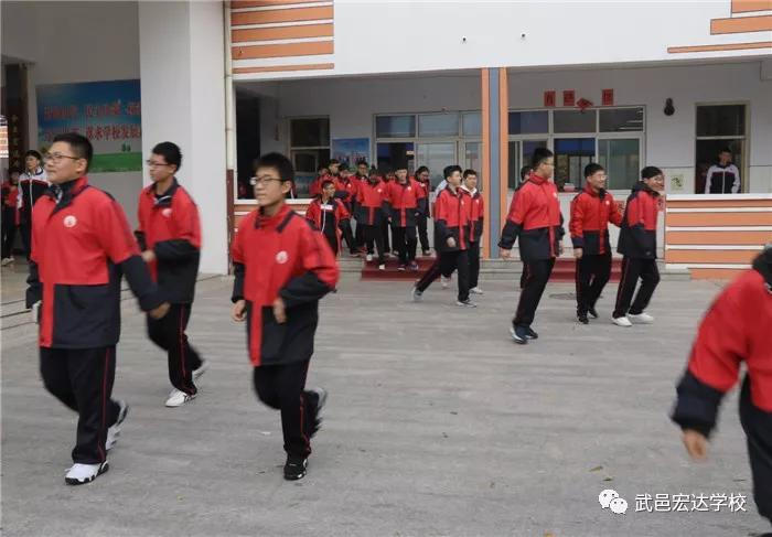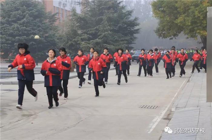 紧张的疏散演习结束后,同学们进入每日的身体锻炼——跑操时间。操场上,同学们精神饱满,斗志昂扬。