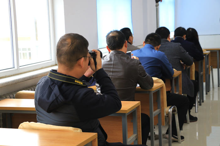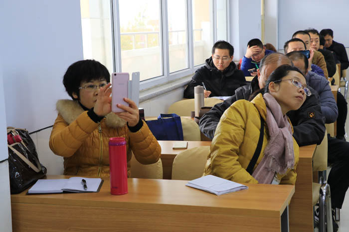 在多媒体教室内,李主任为同仁们作报告。李主任从我校概况、常规管理、初中的教学模式以及办学特色等方面向同仁们进行了细致讲解。随后,大家深入我校的教学课堂,观摩了语文、数学、英语、历史、政治等学科的随堂课。