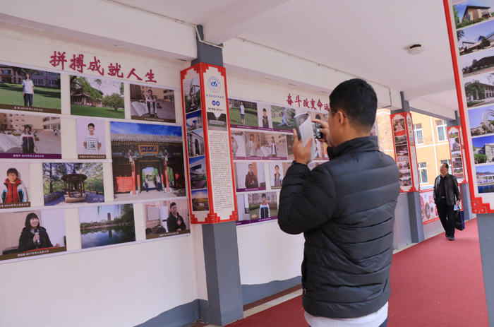 在前往多媒体教室的途中,大家兴致勃勃的参观了校园,深为我校浓郁的校园文化和宏大的办学规模所感染,纷纷驻足观看,时不时拿起手中的相机、手机进行拍照。