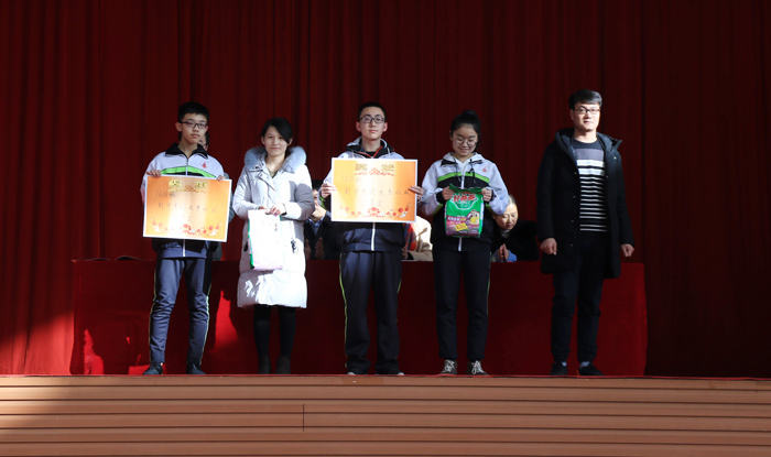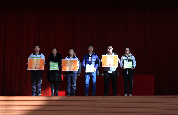 首先,进入期中考试表彰环节。由我校领导向期中考试成绩优秀班集体、综合常规量化优秀班集体、进步学生和优秀教师颁奖。