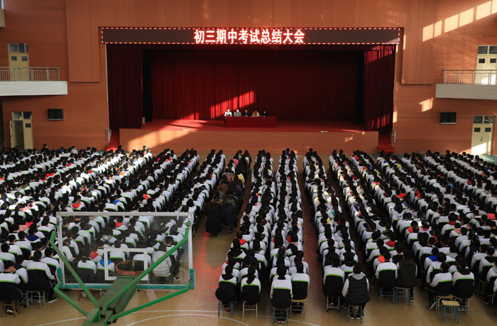 期中考试已过,为鼓励先进,鼓舞斗志,营造浓厚的学习氛围,胜利完成下一阶段的学习任务,11月18日,我校初三年级召开了期中考试总结大会。我校主管教学副校长赵晓燕、主管教学主任李爱群、级部主任周喜峰和全体初三师生参加了此次会议,会议由级部主任姜敬竹主持。