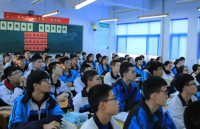 为让同学们对目标理解的更深刻,高老师为大家设定了一个关于“目标”的标准:对于小目标来说,同学之间有竞争,动力才会更足,但要跳出班级,在更大的范围内与更多同级别的学生竞争,确定对手;对于大目标来说,一轮复习相当于是一个重新洗牌的过程,不要给自己设限,勇于超越自我,目标一定要有切实的可操作性,同学们都听得十分认真,若有所思。