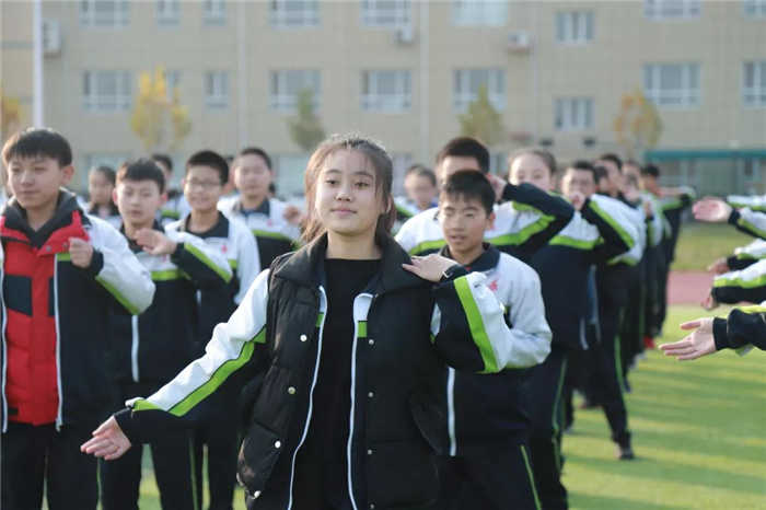同学们整齐优美的动作,自信开朗的笑容,成为冬日校园里一道美丽的风景线。