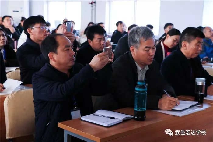 在年级部老师的带领下,客人们来到多媒体教室听报告。李主任以“抓规范重管理 提质量”为题,系统、全面的向大家讲解了我校的发展历程,以及我校在教育、教学管理管理方面的经验与做法。听了李主任的报告,两个参观团的教师们纷纷赞叹我校教育、教学模式严谨细致,时不时以拍照,做笔记的方式记录值得借鉴的地方。