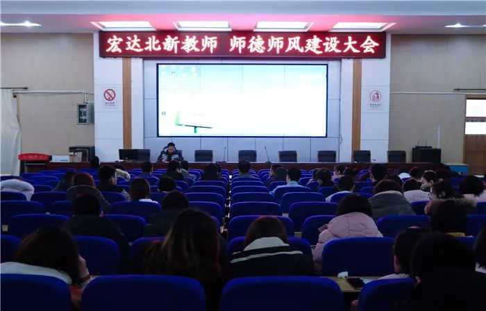习近平总书记在全国教育大会上指出,教师是人类灵魂的工程师,是人类文明的传承者,承载着传播知识、传播思想、传播真理,塑造灵魂、塑造生命、塑造新人的时代重任。为培养一批高素质的教师,11月30日,我校宏达北校区在报告厅召开了新教师师德师风建设大会。我校副校长金耀辉和高一全体新教师参加会议。会议由校区主任孙涛主持。