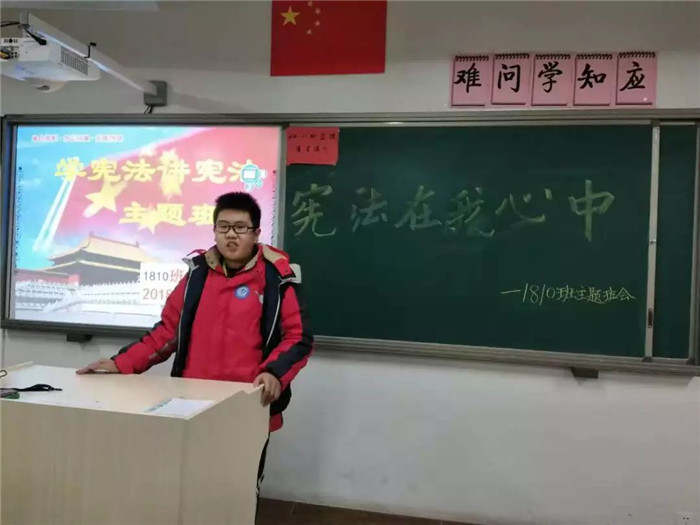 12月9日,宏达实验学校初一年级开展了一场以“学宪法,讲宪法”为主题的班会。有的班主任给同学们做了有关法治教育知识的宣讲,有的班主任组织学生开展与法律有关的演讲、知识竞答、宣誓等活动。在这场生动活泼的班会活动中,师生们都受益匪浅。