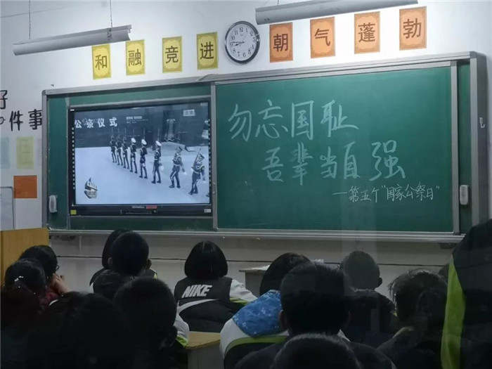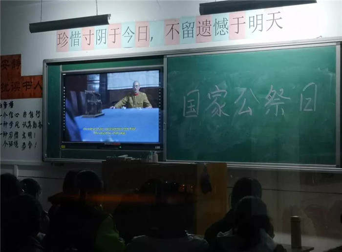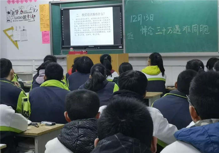 班会伊始,班主任老师为大家播放了《黑太阳南京大屠杀》影片,并详细向学生们讲解了有关南京大屠杀以及国家公祭日的知识,从同学们的表情中,可以看出他们的愤慨之情。