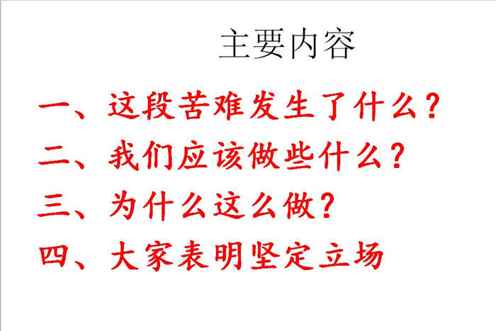随后,进入班会的主要内容。通过提问的方式,班主任向学生们介绍了在这段历史中到底发生了怎样的苦难,并向学生们我们说明了纪念南京大屠杀的时代意义。层层递进,让同学们深刻体会到,这强大,来之不易!这和平,来之不易!