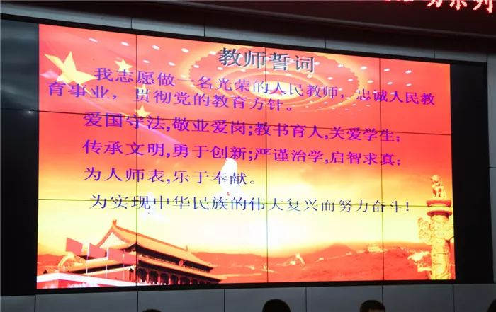 最后由卫主任领誓。大家重温教师誓言,铿锵有力的誓言传达着我校全体教师爱岗敬业、乐于奉献的决心。
