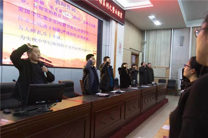 最后由卫主任领誓。大家重温教师誓言,铿锵有力的誓言传达着我校全体教师爱岗敬业、乐于奉献的决心。