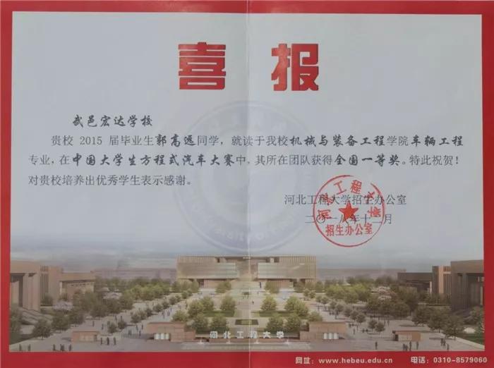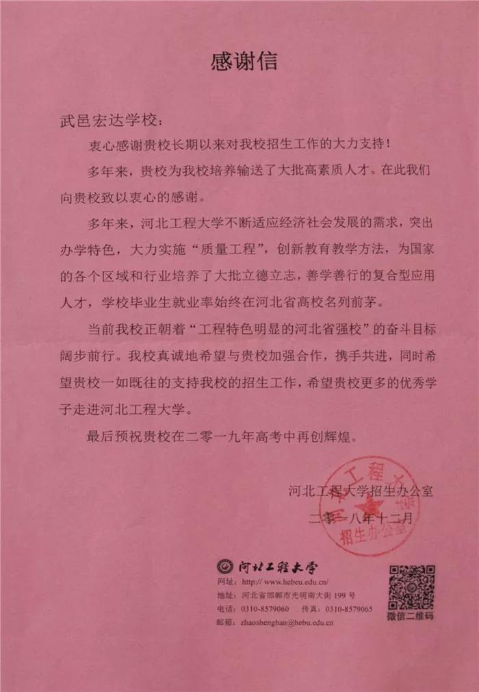 河北工程大学向我校发来喜报和感谢信