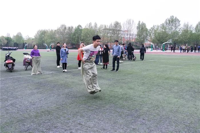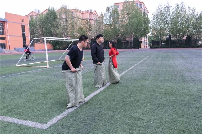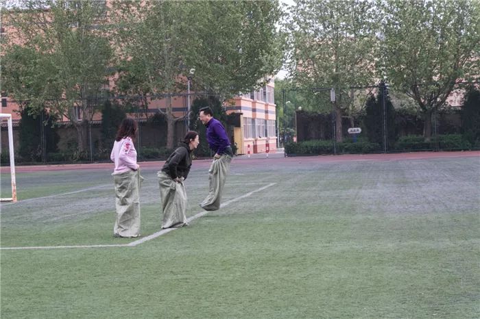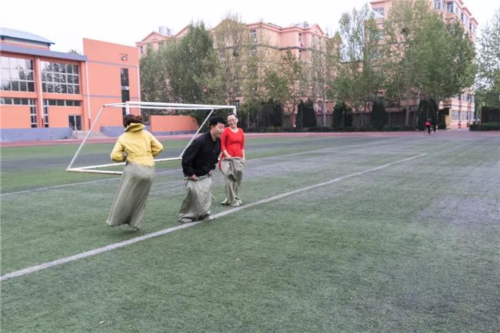 童年的记忆在此刻苏醒,赛场上的老师们提着袋子奋力向终点跳跃,这萌萌的样子还是我们所熟悉的在讲台上的老师们吗,为可爱的你们点赞!