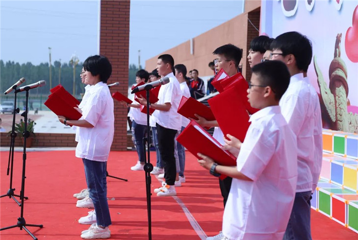 大会在节目《 少年中国说》中震撼开场,全体学生朗诵《 少年中国说》,抒发家国情怀,彰显了昂扬斗志,激励自己在新学期更加自信、努力学习。