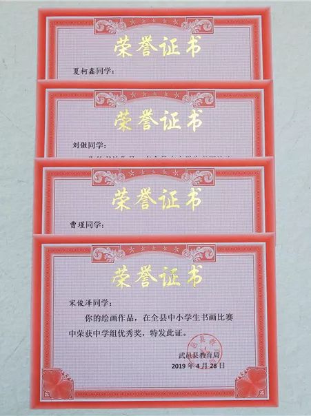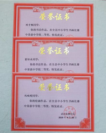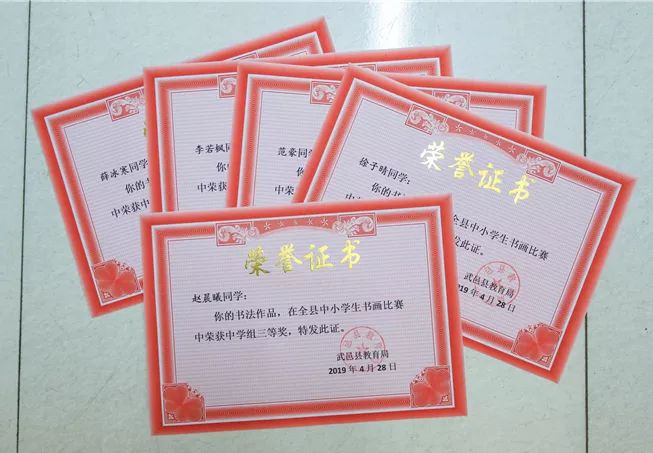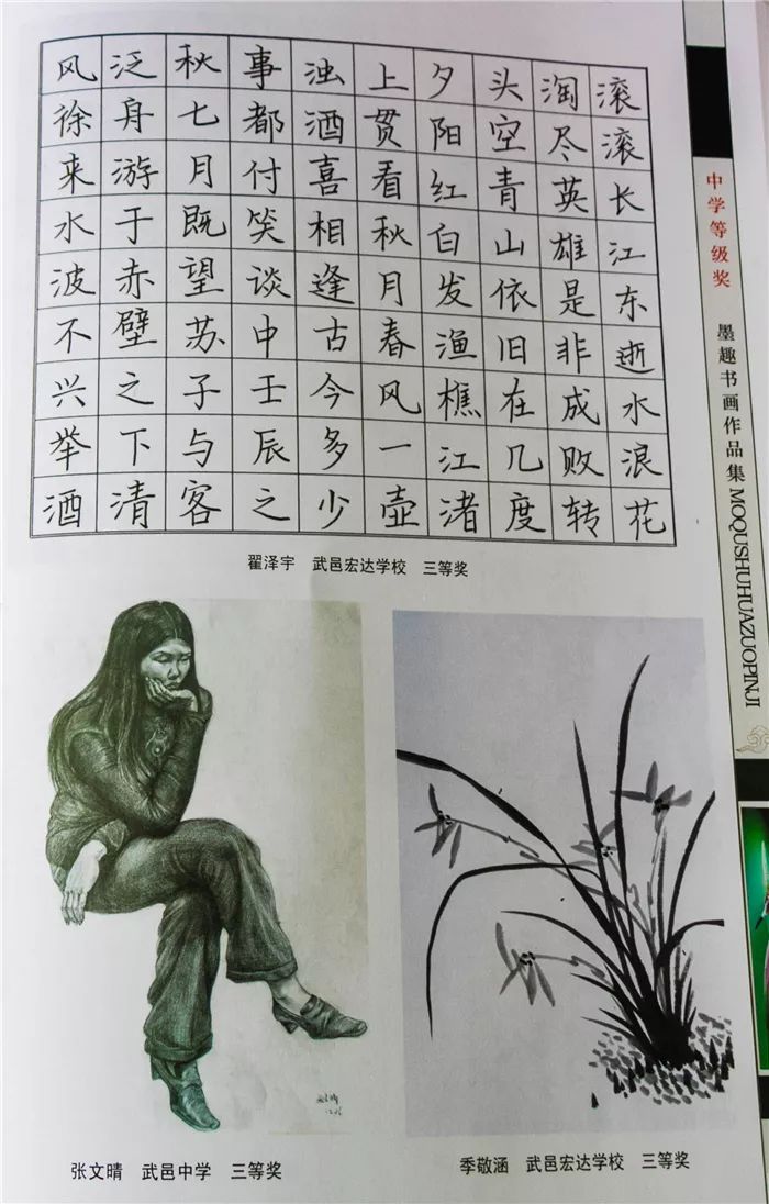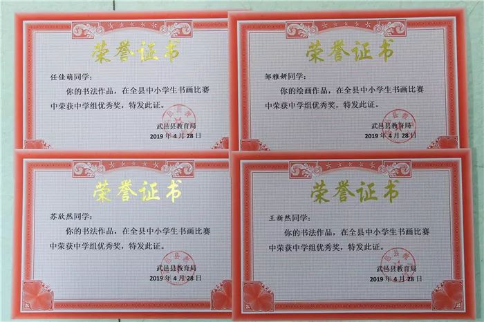 日前,由武邑县教育局主办的全县中小学生书画大赛评选活动圆满结束,经过相关部门人员的严格挑选,我校共有17名同学获奖,其中,一等奖1名,二等奖4名,三等奖5名,优秀奖7名,相关作品将在《墨趣书画作品集》中刊载。