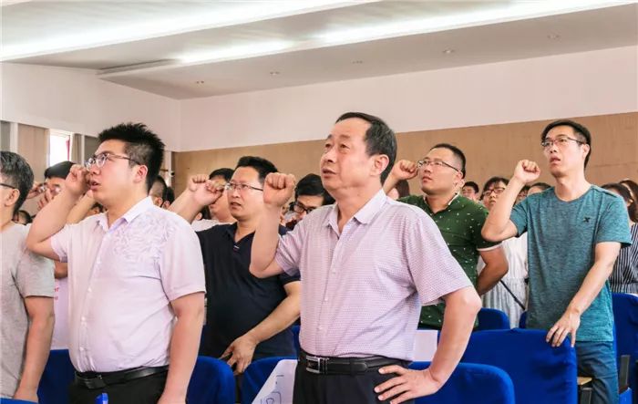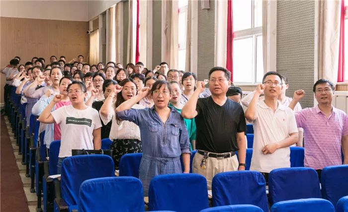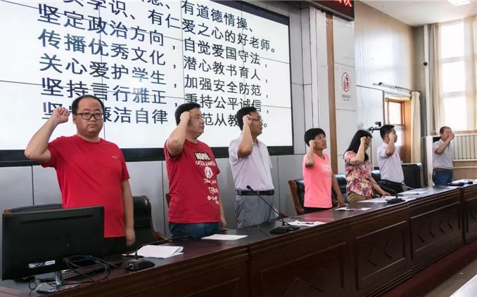 随后,申主任带领大家进行师德宣誓,“做有理想信念、有道德情操、有扎实学识、有仁爱之心的好老师......”庄严的誓词、嘹亮的声音展现了我校老师们争做优秀人民教师的决心。