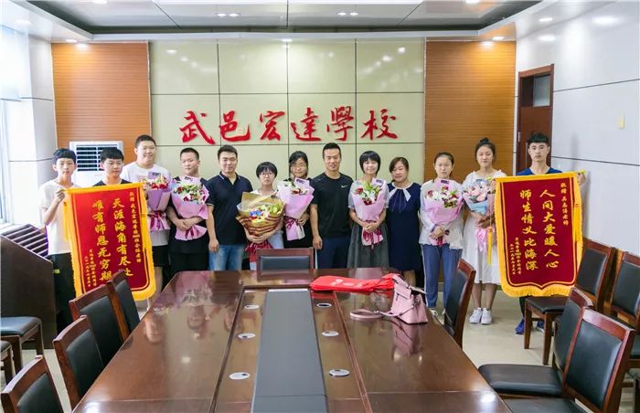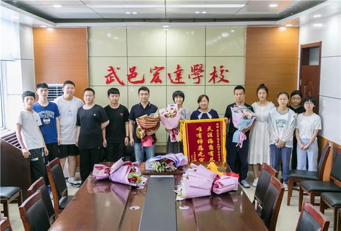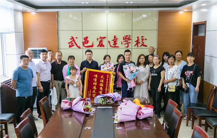 7月6日,我校初三年级1602班的家长代表来到学校,为班主任吴志涛老师及1602班全体老师送来了锦旗和鲜花,以表达对老师们辛勤付出,使孩子在中考中取得优异成绩的感激之情,我校级部主任姜敬竹和1602班老师在会议室热情接待了前来的家长代表。