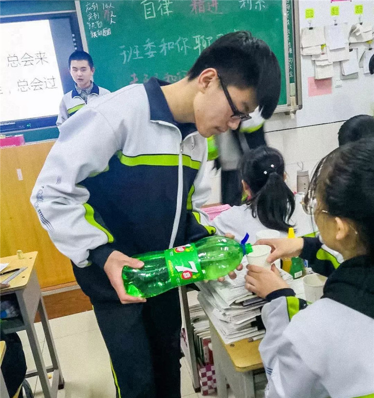 单老师注重学生的德智发展,她说:“立德树人,一定要先立德,再成才。”因此,她特意为班里的学生做了胸章,上边的八字班训:自律、精进、利索、高效,一直陪伴了学生一年,每个学生都可以熟记于心。