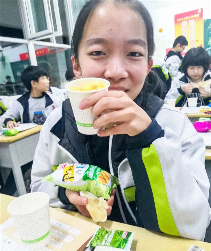 生活中,单老师陪学生吃饭是经常的事。有时遇到学生的饭卡里恰巧没钱了,她便会让学生刷她的饭卡,单老师经常挂在嘴边的一句话就是:“吃饱饭才能有力气学习。”