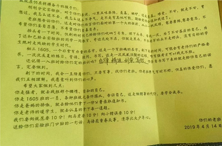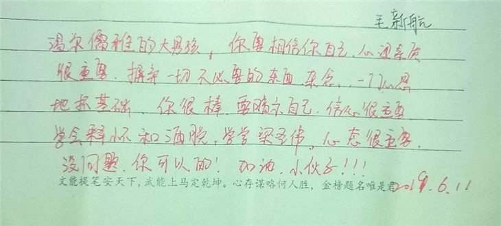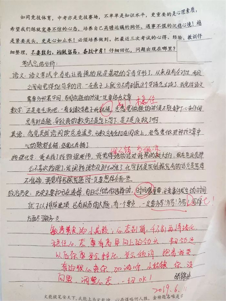 中考的那段时间,单老师会让学生们写分析,然后给他们回信,针对每个孩子,单老师精心准备了不同的鼓励话语。