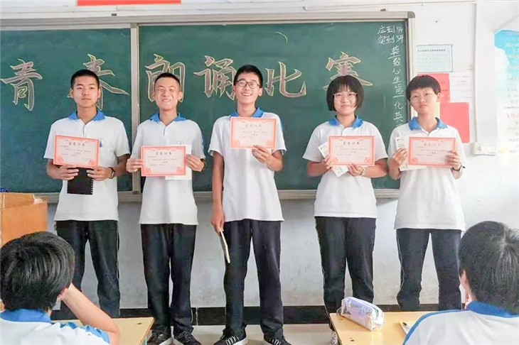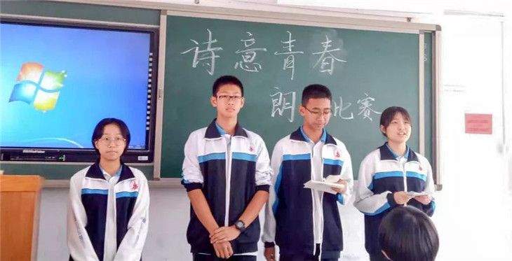 此次比赛,同学们踊跃报名,各个班级纷纷派代表“出战”。比赛中,他们以饱满的热情、浑厚的嗓音、独具个性的表演使大家感悟着诗歌字里行间中的优美隽永,升华了情感,触动了灵魂,陶冶了情操,给予了同学们心灵的震撼和美的享受。