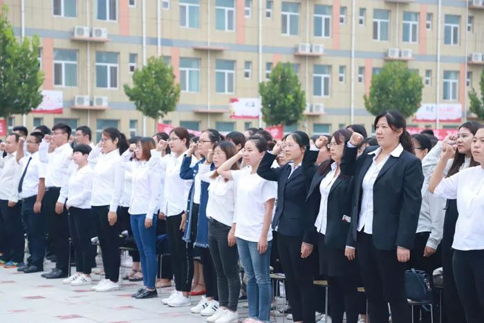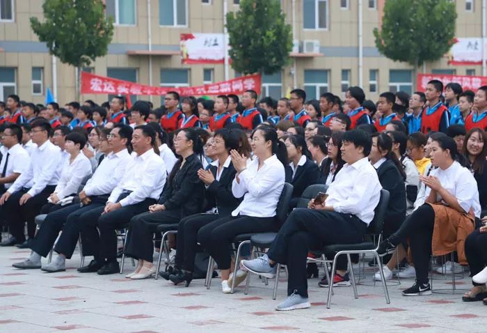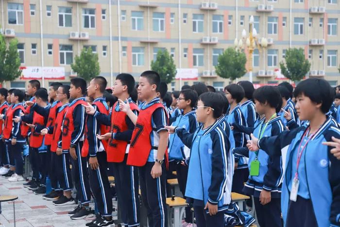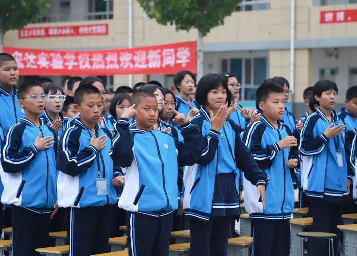 开学典礼在庄严的升旗仪式中拉开帷幕。学生代表、初一新生家长代表、教师代表相继进行发言,赵副校长进行总结发言,随后,全体师生进行入学宣誓。
