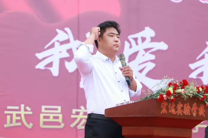学生代表王思博同学的发言反复强调一个“勤”字, “万丈高楼平地起”,初中阶段是我们人生中一个非常重要的阶段,求学的路上没有捷径可走。典礼上学校邀请了初一新生王馨笛的家长做代表,她表示,作为一个母亲,她心中充满了期待,愿同学们乘坐着武邑宏达实验这艘教育的巨轮奋进、远航!教师代表郭书双老师作了热情洋溢的发言,郭老师贴近生活、通俗易懂地教育同学们要勇于拼搏并且敢于挑战自我。