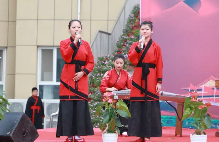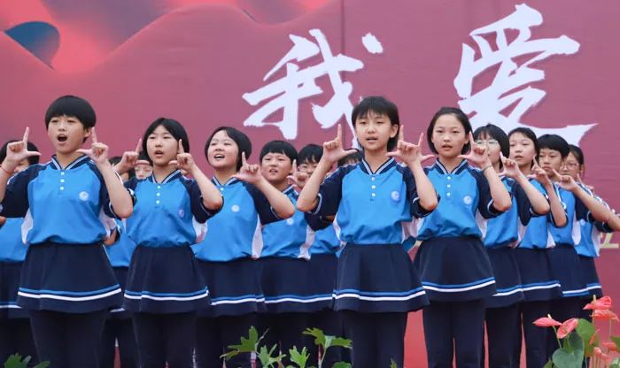 整齐划一的动作、庄严虔诚的神态,同学们将尊师理念、爱国情怀融入歌曲中,为我们带来一场视觉盛宴。