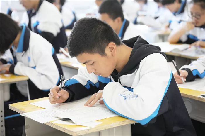 考场上,同学们认真思考,奋笔答题,教室里静得只能听到沙沙的书写声。