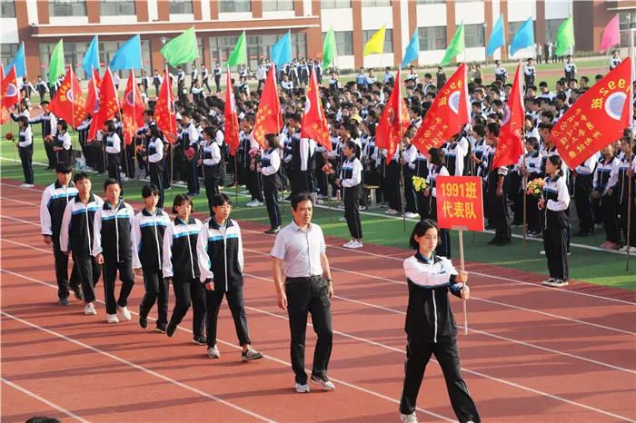 紧接着各个方队有序入场,依次是国旗方队、校旗方队、鲜花方队、彩旗方队、班旗方队、裁判员方队、运动员方队。