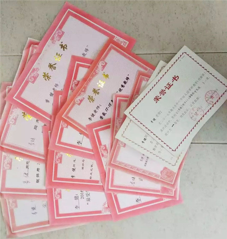 通过多年的努力,李老师取得了骄人的成绩:多次被学校评为“优秀教师”,在县市说课、微课、视频课比赛中,均获得优异成绩。多篇论文在省市刊物上发表。