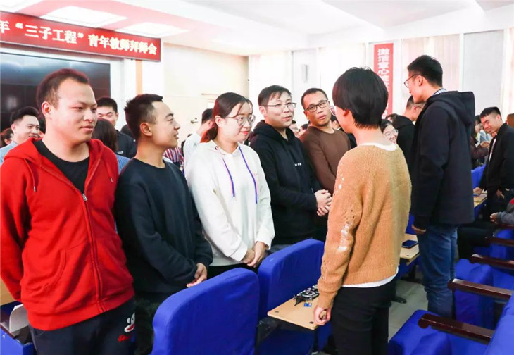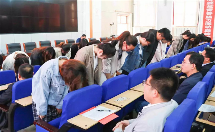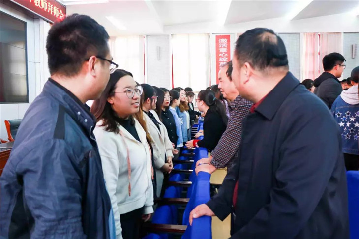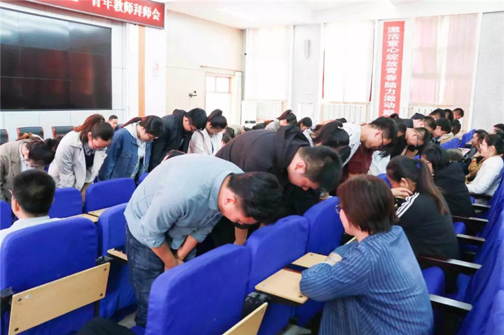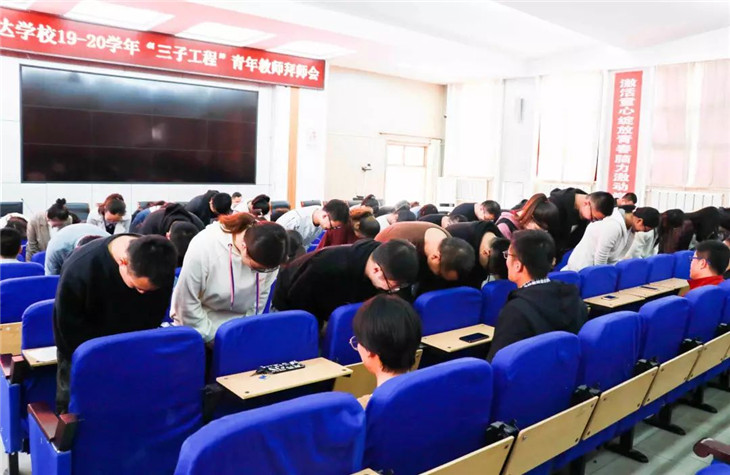 随后,在杜主任的主持下,青年教师全体起立,面向师傅深情三鞠躬,以表达自己对师傅悉心栽培的感谢以及发愤图强,向师傅虚心学习,共创佳绩的决心。师傅们也对徒弟进行了细细叮咛,表示今后会倾囊相授,和徒弟共同进步,一起为教育事业及宏达的未来创造新的辉煌。