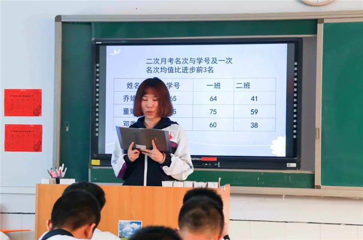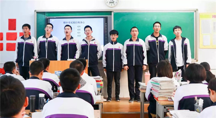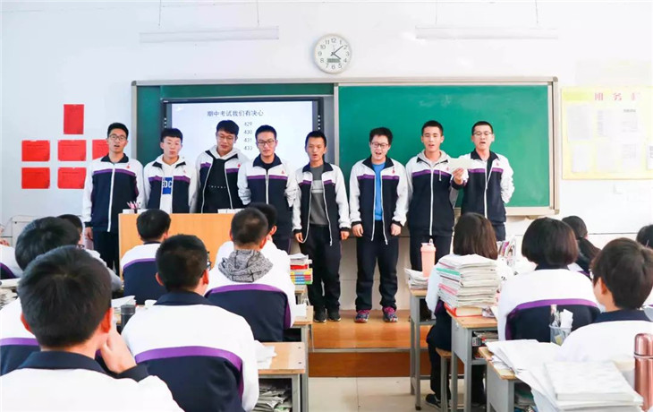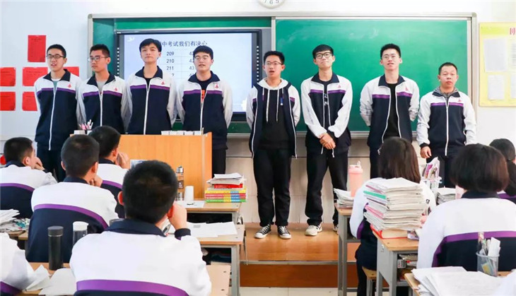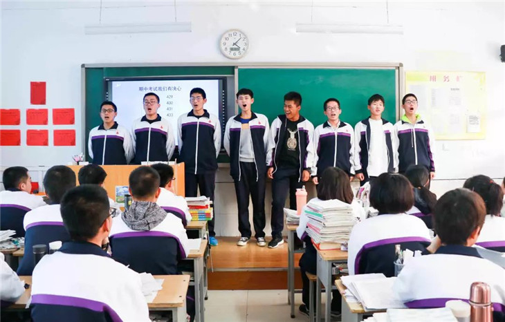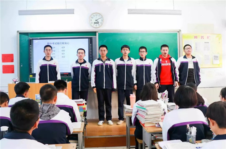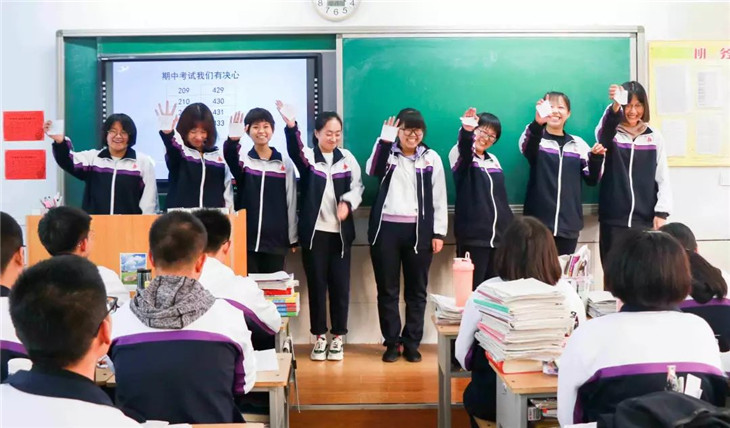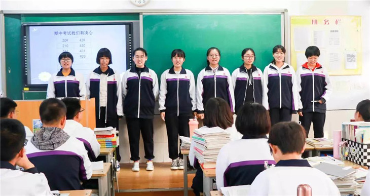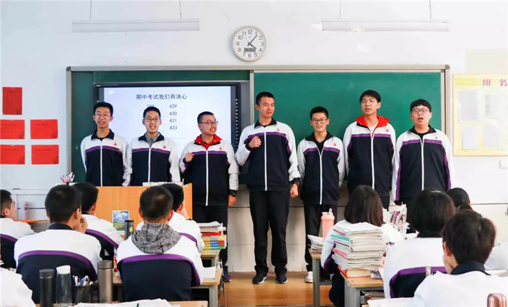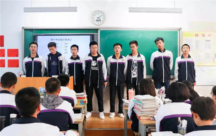 为充分调动了学生对班会课的参与度,王老师安排学生以宿舍为单位依次站上讲台,向同学和老师高声呐喊自己的誓言,表明自己为期中拼尽全力的决心。至此,班会课也达到高潮,同学们掌声频出,为自己的同窗好友加油打气。