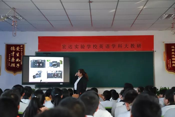 第一环节:骨干教师展示示范课。此次由陈冬艳老师对任务型阅读“照相机的发明(the invention of the camera)”进行示范,根据任务型阅读的特点,陈老师改变以往完形填空的重点讲解选项的形式,把文章变成根据上下文填空进行讲解。