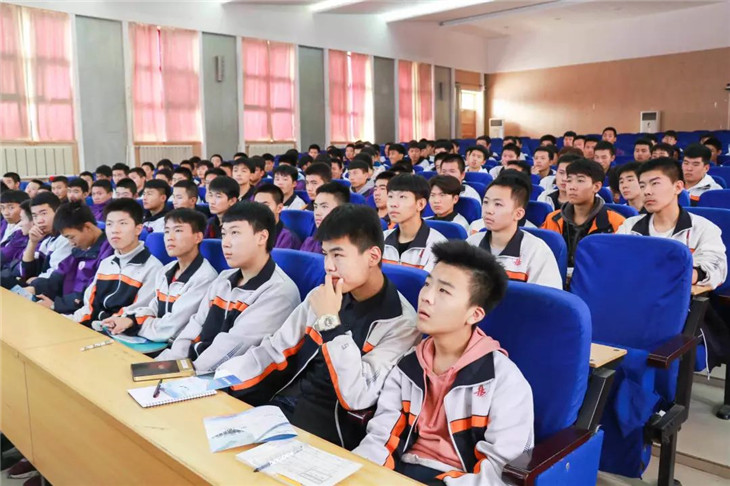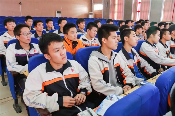 随后,宣讲会正式开始。曹干事向高三年级学生发放了空军招飞简章等相关材料。魏科长从空军招飞基本情况、招飞工作面临的新形势新特点、报名条件、选拔程序、飞行员的福利待遇等方面向学生进行了详细宣讲,特别是就学生的文化成绩、身体素质要求及人生价值等方面进行了详细阐述。魏科长幽默而饱含激情的宣讲语言不时赢得一阵阵热烈的掌声,更令在场学生热血沸腾,跃跃欲试,希望能成为空军飞行的一员,为实现祖国的强国梦、强军梦贡献力量!