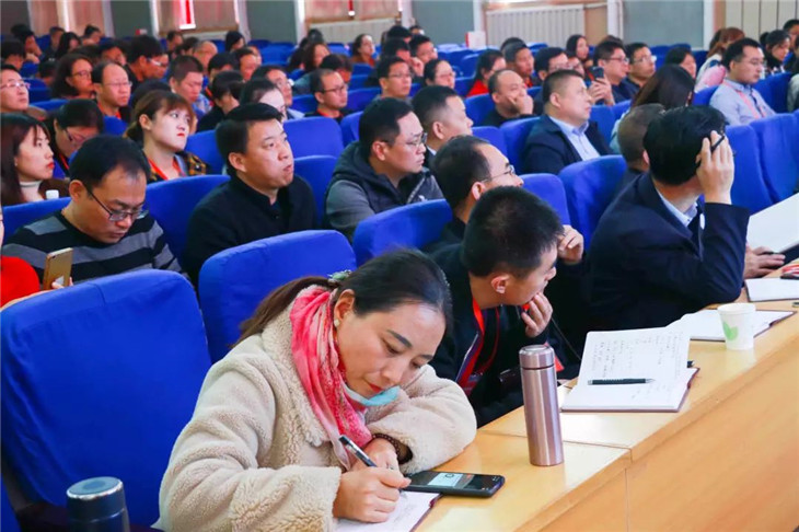 刘副校长以“勤奋中创新 和谐中争先——抓常规 促规范 提质量”为题,从我校的办学情况、教育教学常规管理两部分详细展开,全方位向同仁们解密了我校的教学管理策略与高效执行力,期间金句连连,精彩不断,同仁们深受触动,频频点头,用笔头和手机记录值得借鉴之处。