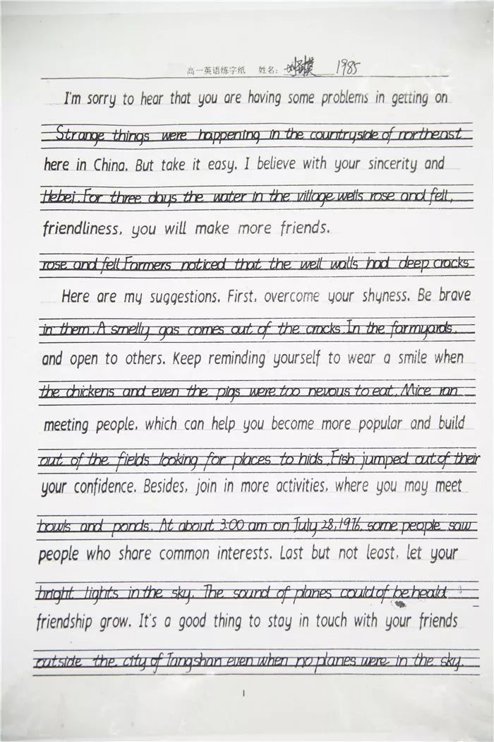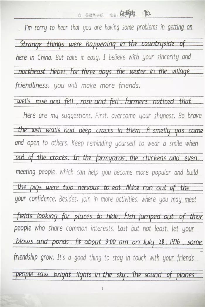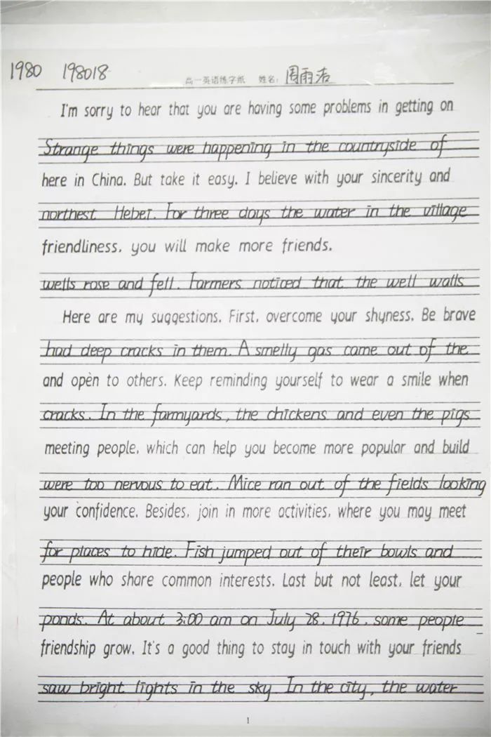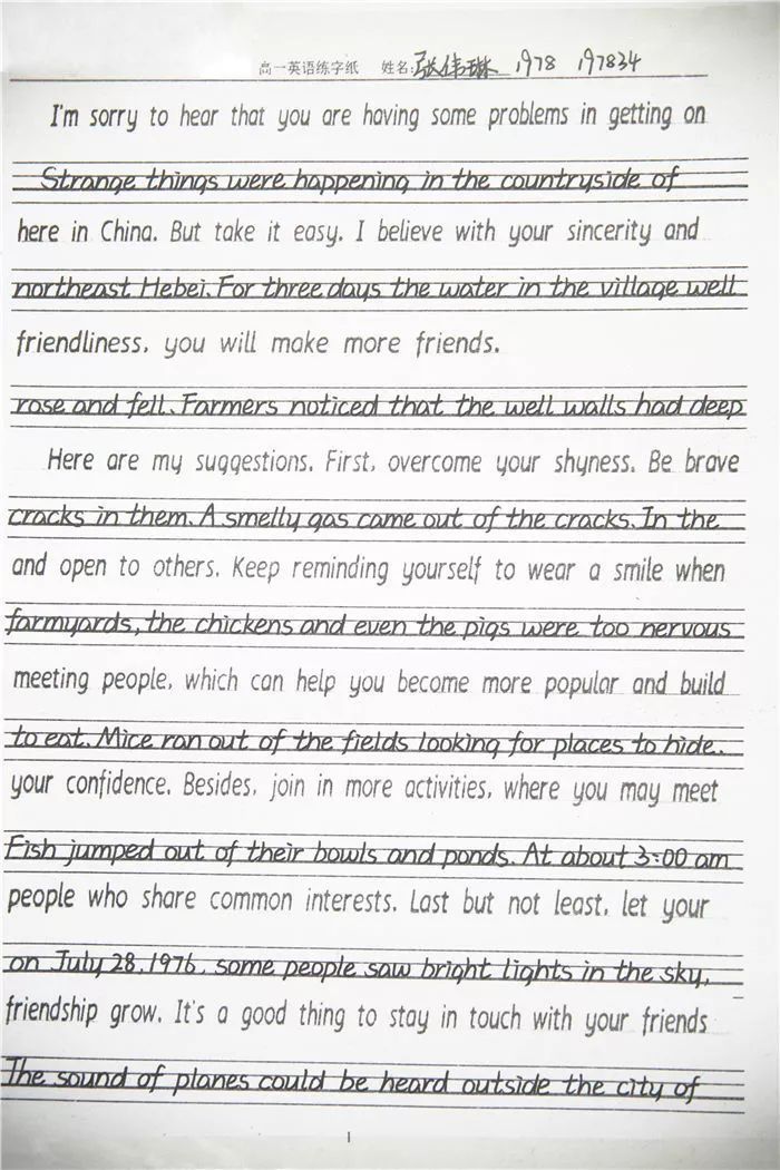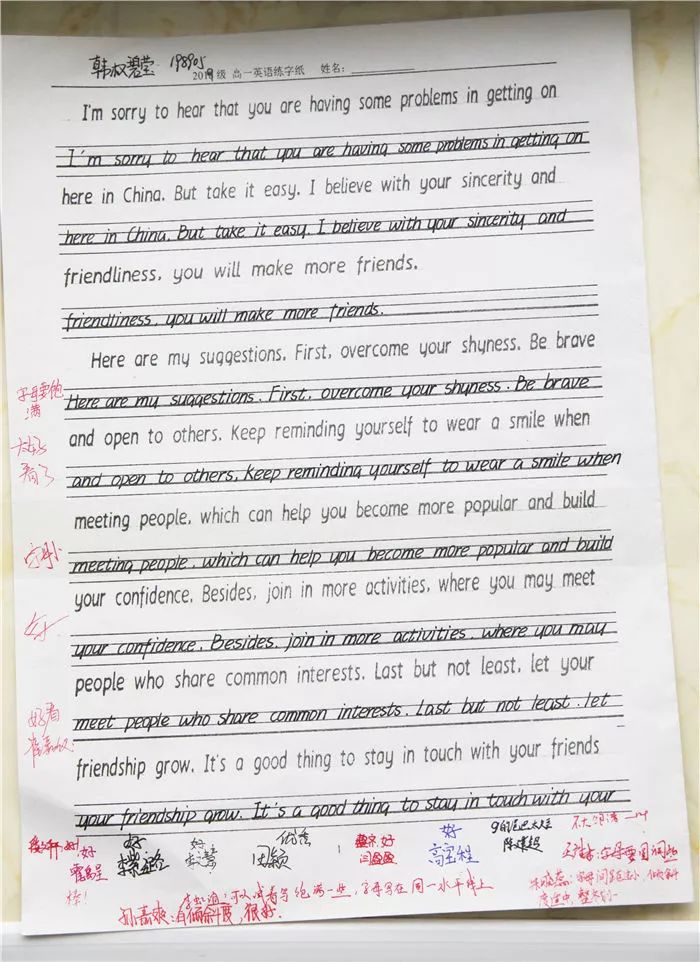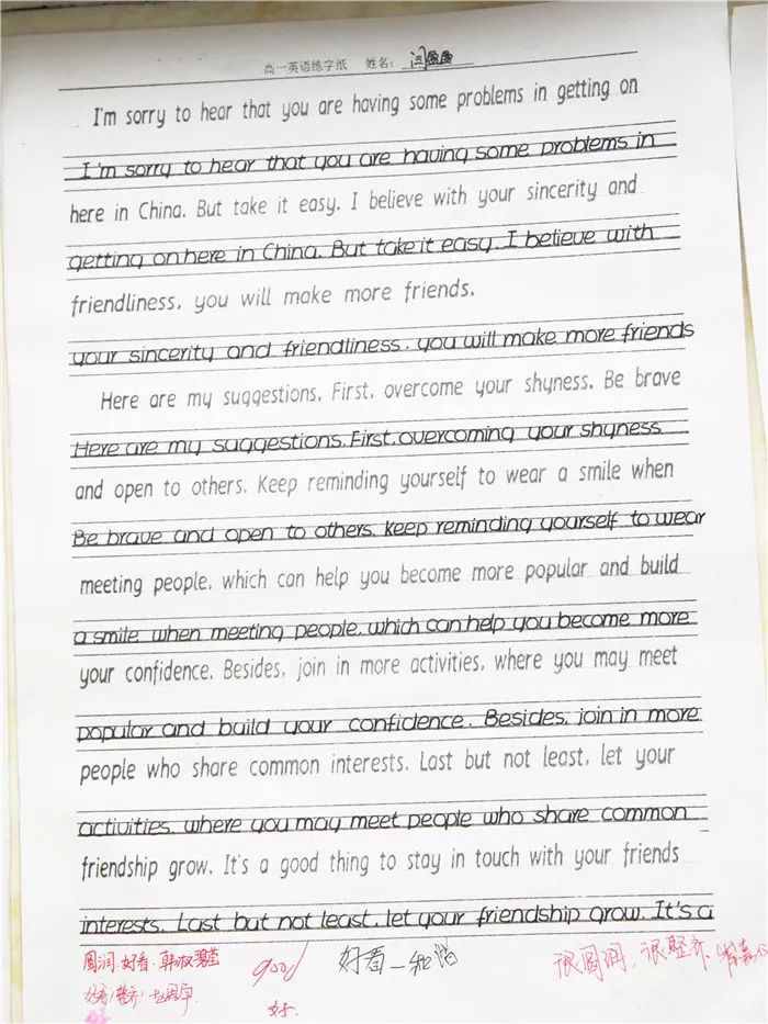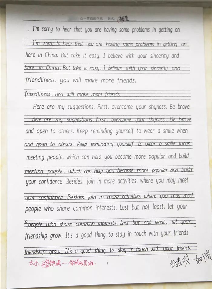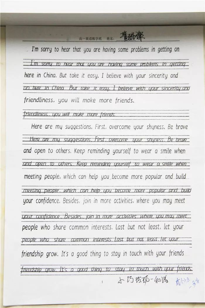 为规范书写,保证答题卷面清晰明了,近日宏达东方学校高一年级英语组举行了一场英语书法竞赛。