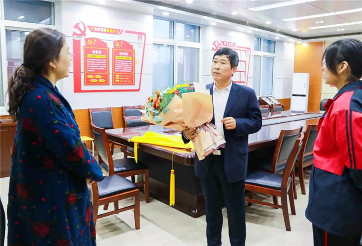 11月3日,高二年级的靳晰学生家长来到学校,为我校高二年级主任张延华送来了一束鲜花和一面绣有“授教固有方 桃李满天下”的锦旗,以此来表达对学校和张主任关心、照顾孩子的感激之情。我校高二年级主任张延华、级部主任张伟在会议室热情接待了学生家长。