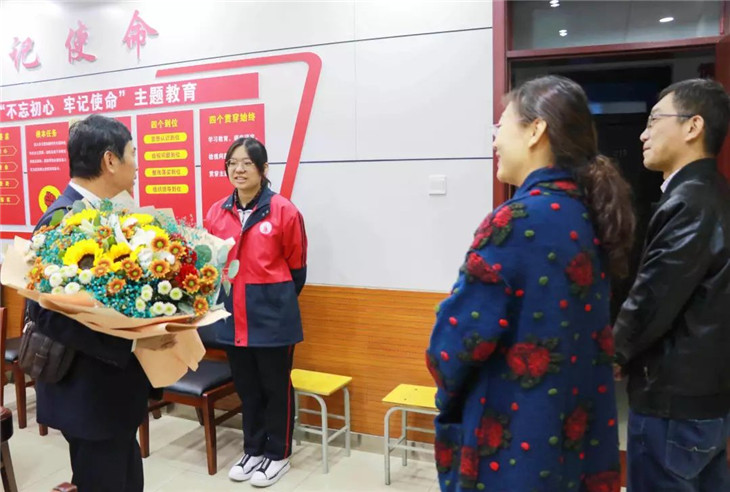 张主任表示,尽心竭力为每位学生创造良好的学习生活条件是我们学校应该做的,希望靳晰能珍惜机会,刻苦练习,在练琴和学习两不耽误的情况下,再创我校高考新的辉煌!
