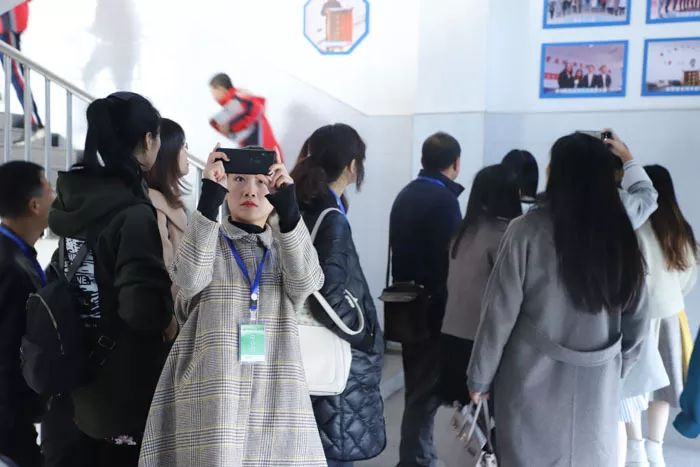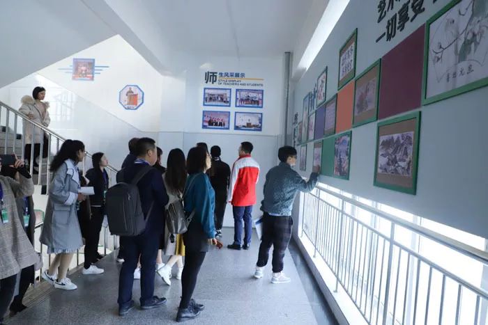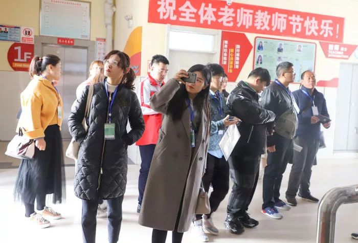教师参观团一到学校就受到了热烈的欢迎,并在学校老师的陪同下参观了校园文化和各功能教室。整洁优美的校园环境、独具匠心的特色文化,给参观团留下了深刻的印象。他们边看边拍边记录,感受着我校文化建设的浓郁氛围,赞不绝口。