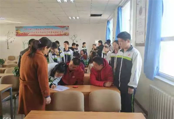 周喜峰、吴冠静主任全程监督,学生家长和学生本人现场签字,年级部干事和班主任现场指导,分班分区进行签字,大大地提高了贫困补助金发放的精准度。