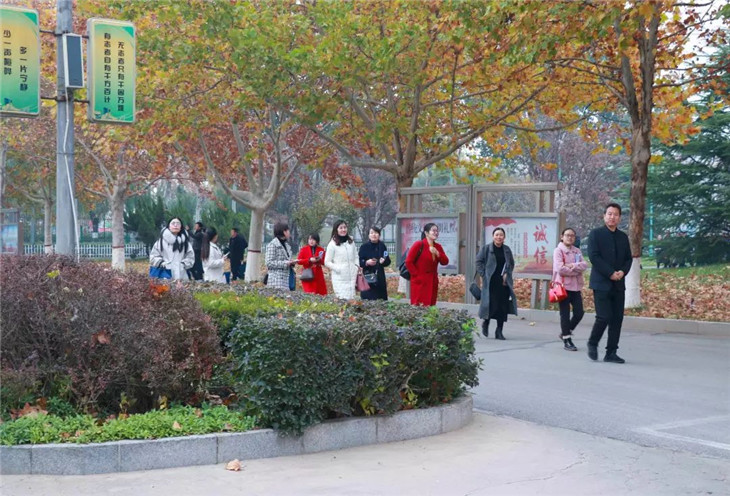 在前往教师听课的途中,邱主任和刘主任带领大家参观了我校的校园文化建设,并进行了细致讲解。我校整洁优美的校园环境、独具匠心的特色文化,给客人们留下了深刻的印象。他们边看边拍边记录,感受着我校浓郁的校园文化氛围,赞不绝口。