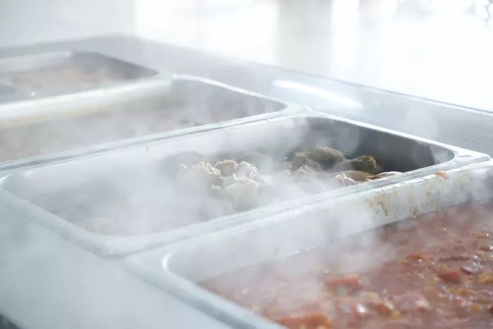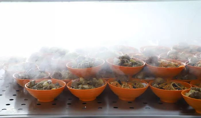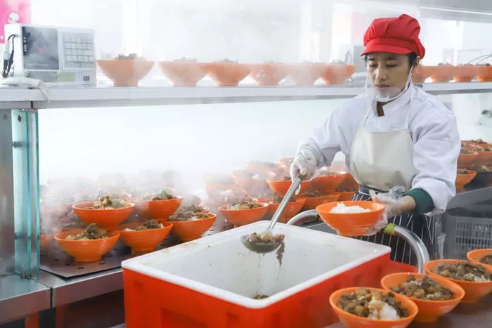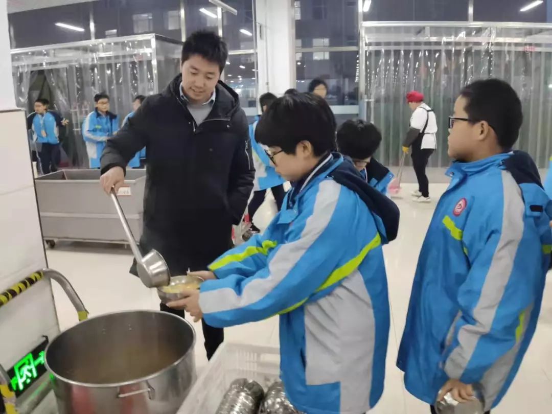 值班老师帮学生舀的免费热粥