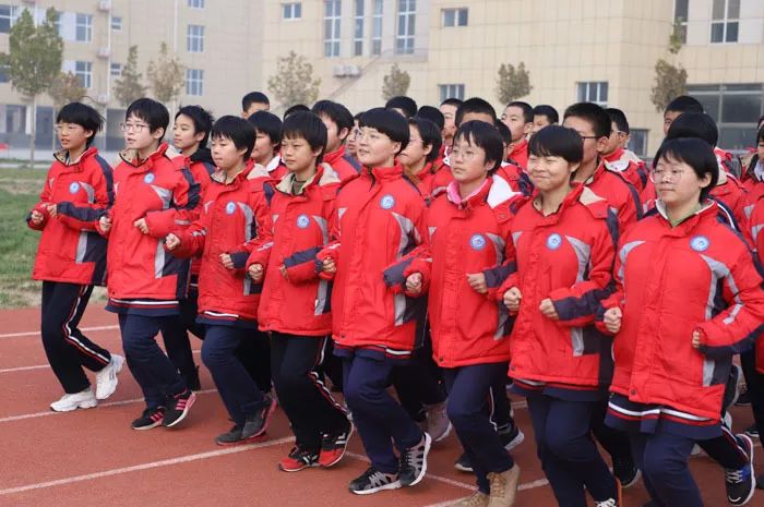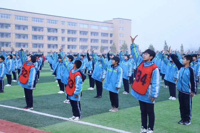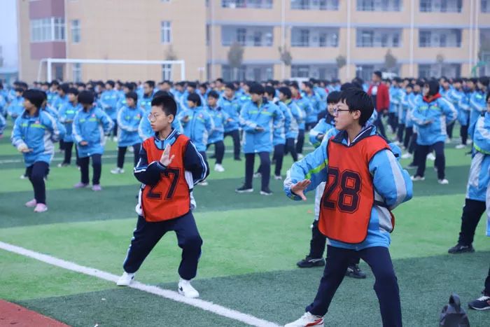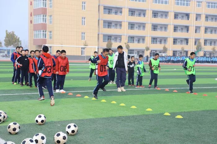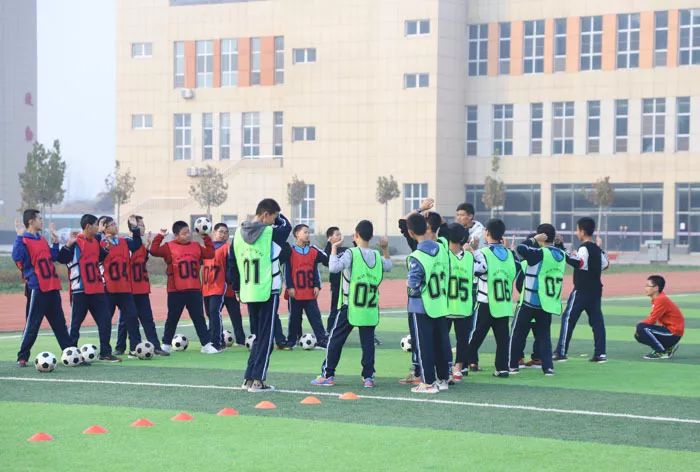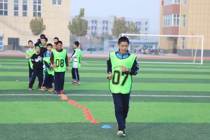足球场上奔跑的同学说