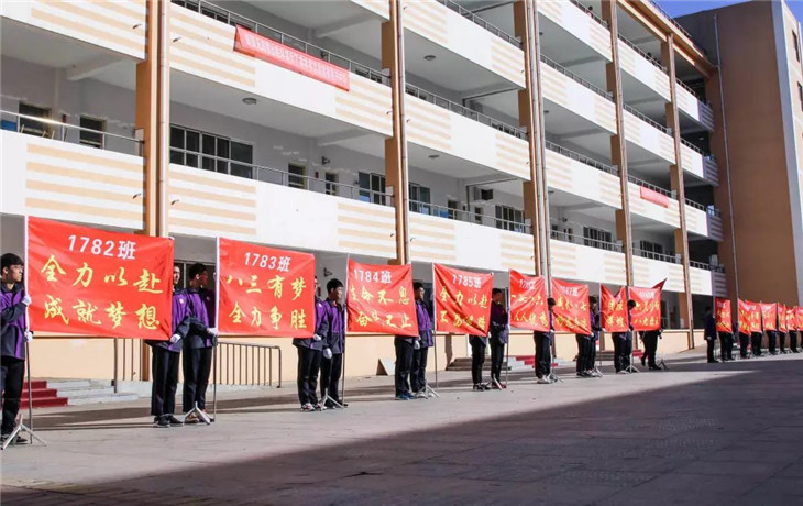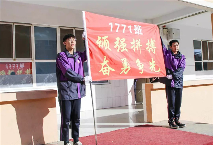 整个活动在激昂的《军威进行曲》中进行。各班旗手精神抖擞,庄重地从刘嫦妍主任手中接过班旗,身体笔直,持旗而立。各班同学面向印有励志口号的班旗,高声宣誓。全体师生精神饱满,情绪高昂,口号嘹亮,充分展现出积极向上、冲刺高考的阳光心态。