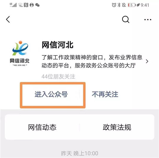 1.打开“网信河北”官方微信公众号;