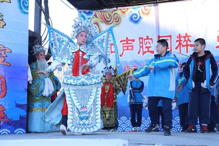 阳光灿烂的午后,宏达实验学校两千多名学生,怀着激动的心情,迎来一场视觉盛宴。浅显易懂的讲解,幽默风趣的表演,灵动婉转的唱腔,精湛扎实的演技,深深的感染着现场的师生。表演结束后,同学们纷纷上台,跟随演员亲身体验,眼神,身段,神态,动作……零距离感受戏曲特色,领略戏曲魅力。