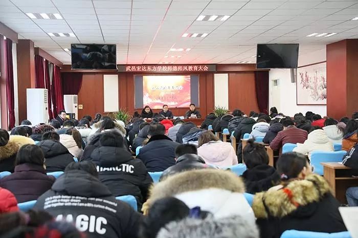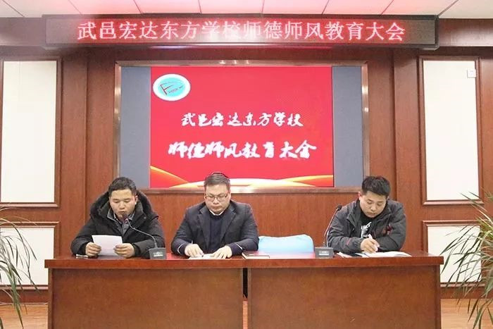 为进一步贯彻落实党的教育方针,推进我校师德师风建设,提高我校教育教学质量,近日,宏达东方学校召开了师德师风教育大会。高一年级主任马利辉,级部主任程龙、叶子举以及高一年级全体教师参加本次会议。